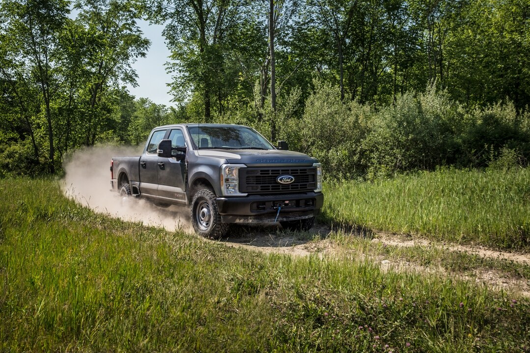 Every Ford Super Duty truck features robust construction with high-strength steel frames, military-grade aluminum alloy bodies, and advanced suspension systems. An optional Tremor Off-Road Package adds specialized components, including unique springs, electronic locking differentials, and off-road-tuned shock absorbers, for more capability over challenging terrain.